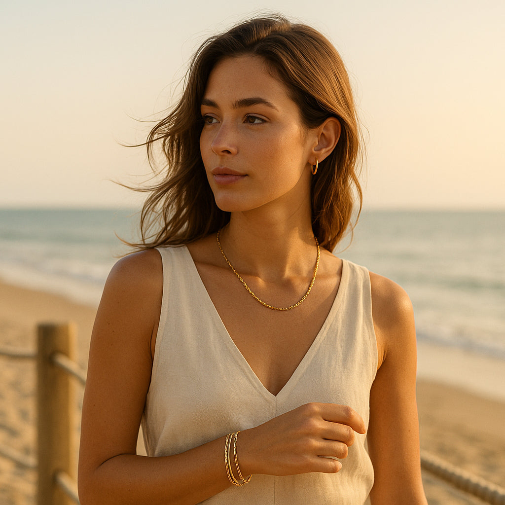 Waterproof, hypoallergenic jewelry that won’t fade or tarnish. Consciously crafted with ethically sourced materials and backed by a lifetime color warranty. Wear it to the shower, beach, or gym—elegance that lasts. Free worldwide shipping and a 30-day happiness guarantee.